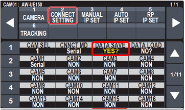 カメラ番号(AW-RP150で選択したカメラ番号)を選択する。