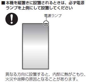 設置方向を異なる方向に設置すると、内部に熱がこもり、火災や故障の原因となる事がございます。