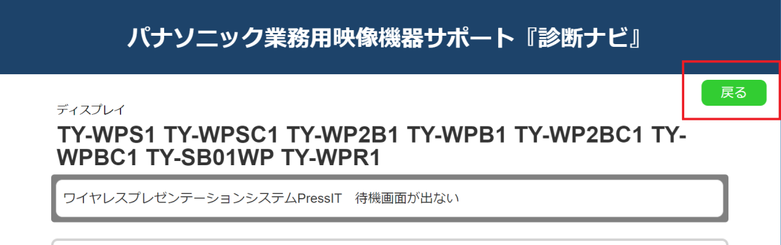 お手数ですが、こちらをクリックして、改めて送信機の「メインボタン/LED」の色に合わせて、診断ナビを進めてください。