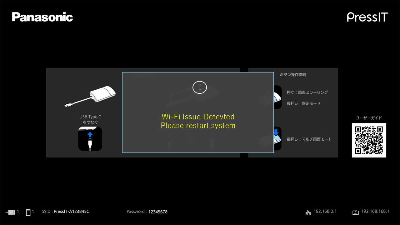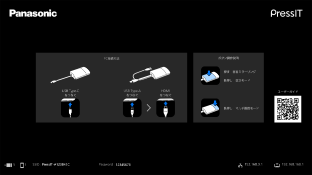 待機画面が出ていない場合は、先にこちらをクリックして、「ワイヤレスプレゼンテーションシステムPressIT 待機画面が出ない」をご確認ください。