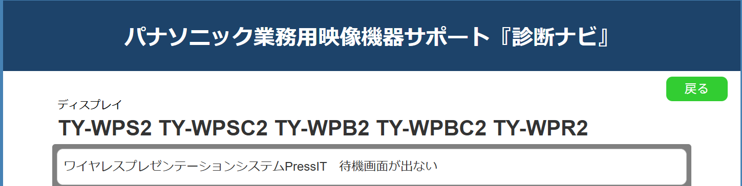 映像が表示されない場合、送信機に別の問題が発生している可能性がございます。こちらをクリックして、送信機の「メインボタン/LED」の色に合わせて、診断ナビを進めてください。